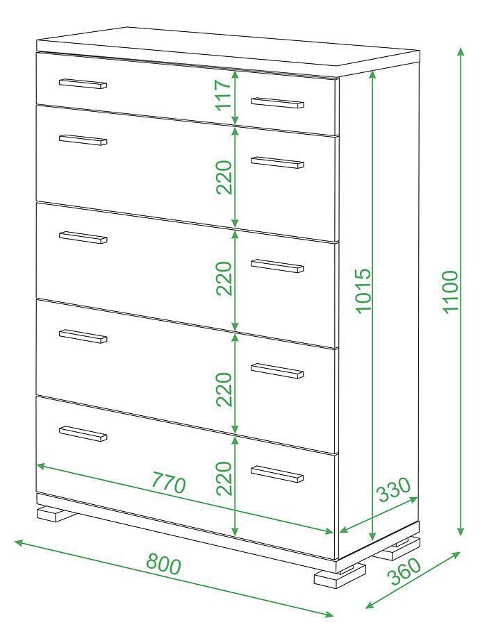 В комоде 4 больших ящика и 1 маленький для мелочей