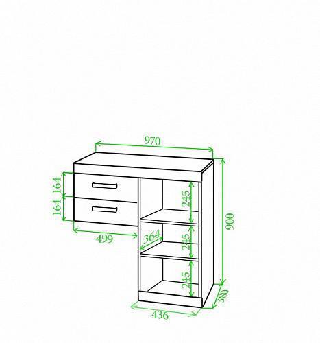 1 дверца, 1 полка, 2 ящика