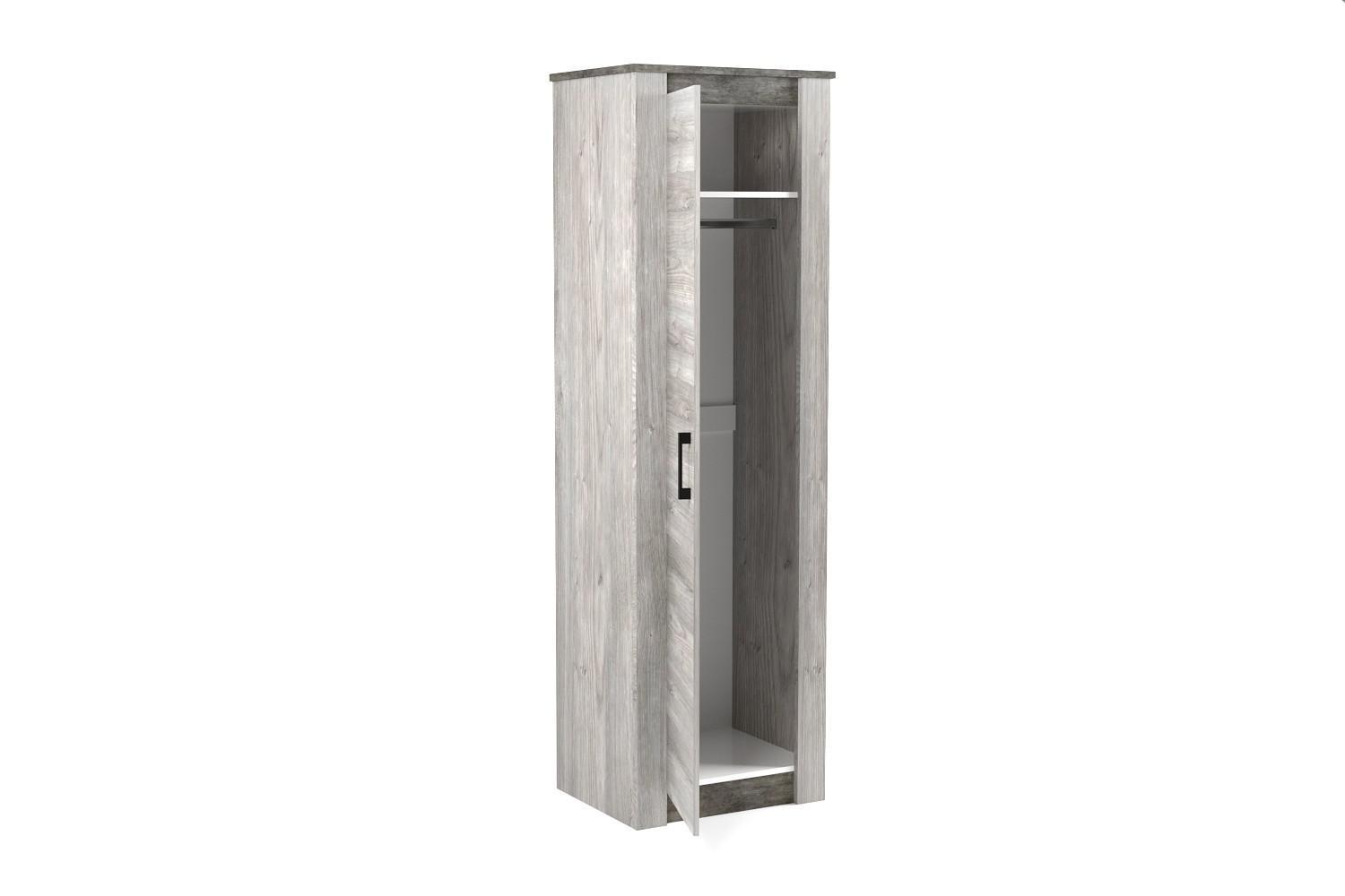 Ищете практичную и эффектную мебель для комнаты? Шкаф платяной Денвер из коллекции «Денвер» – то, что вам нужно. в следующей комплектации: 1 дверца, 1 полка, 1 штанга для вешалок. ЛДСП Е1, из которого сделан фасад, имеет прочное верхнее покрытие (цвет «риббек серый»), оптимальное для использования в зонах с повышенной проходимостью, а комфортные размеры изделия позволят выигрышно использовать полезное пространство (шкаф шириной 672 мм и глубиной 538 мм, при этом вы сможете разместить в нем все необходимое благодаря внушительной высоте, равной 2194 мм).