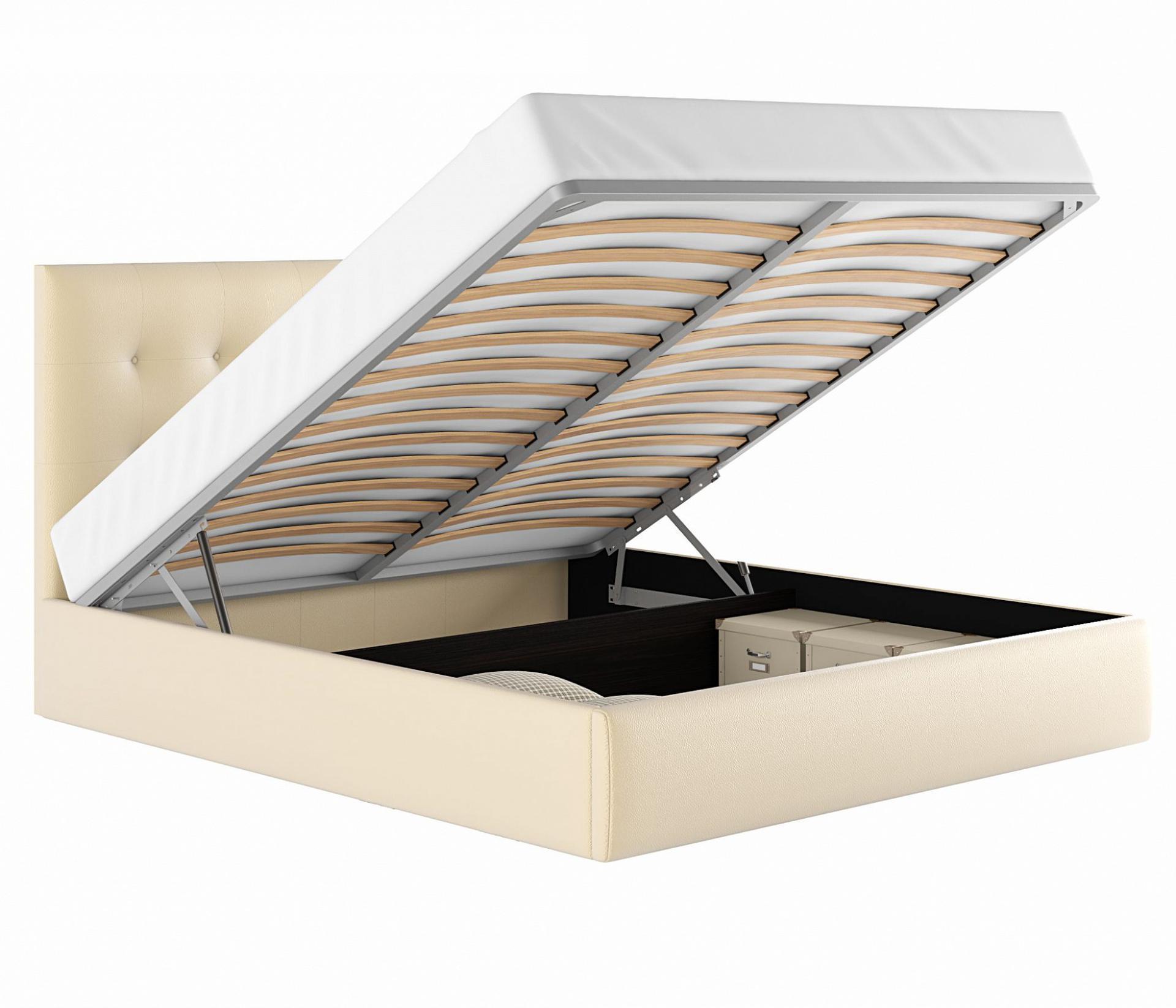 Кровать оборудована удобным подъемным механизмом. Подъемный механизм с гнутоклееными ортопедическими основаниями поднимает кровать под углом 45 градусов.