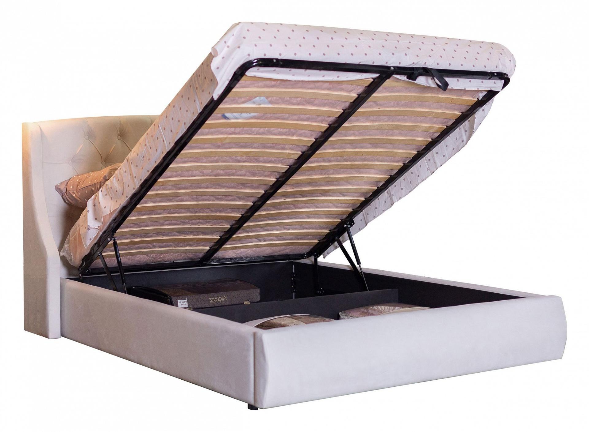 Передняя часть предназначена для хранения постельных принадлежностей. Данное пространство закрывается противопыльным матерчатым коробом из плотного спанбонда.