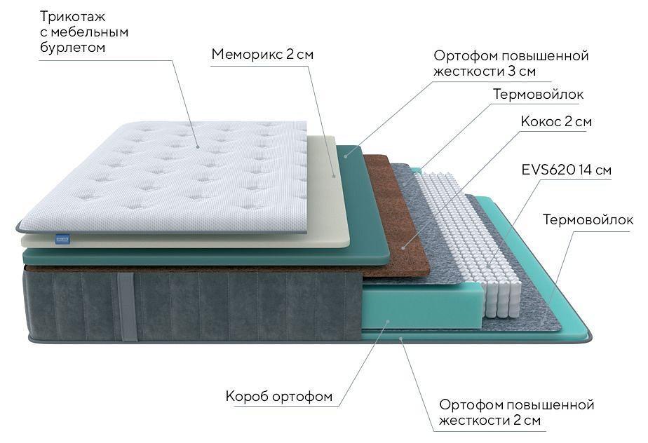 Вязкоэластичный материал придает матрасу так называемый эффект памяти. Под воздействием тепла и веса спящего, мемори медленно подстраивается под его анатомические изгибы, повышая анатомичность матраса Glory Firm и комфорт вашего сна.