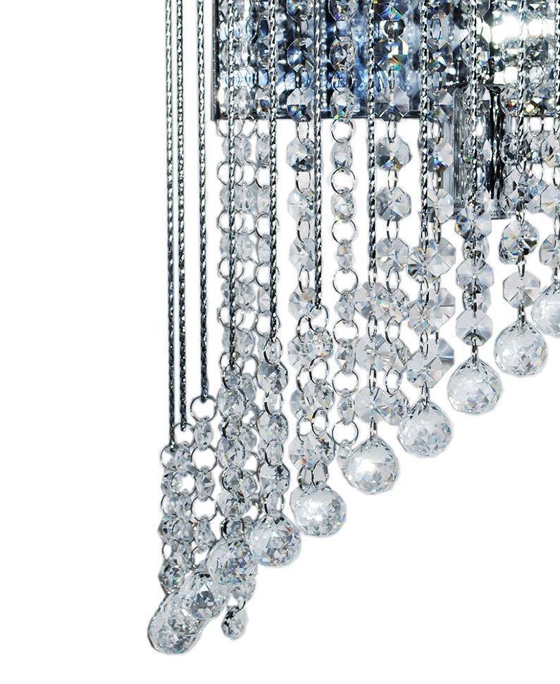 ЭЛЕГИЯ. Легкий звон дождя едва уловим в сияющих нитях хрусталя серии "ЭЛЕГИЯ". Бусы на тонких витых струнах сияющим потоком обрываются вниз, беря свое начало из элегантных металлических оснований. Радужными искрами света наполнится любой интерьер украшенный бра представленной серии.