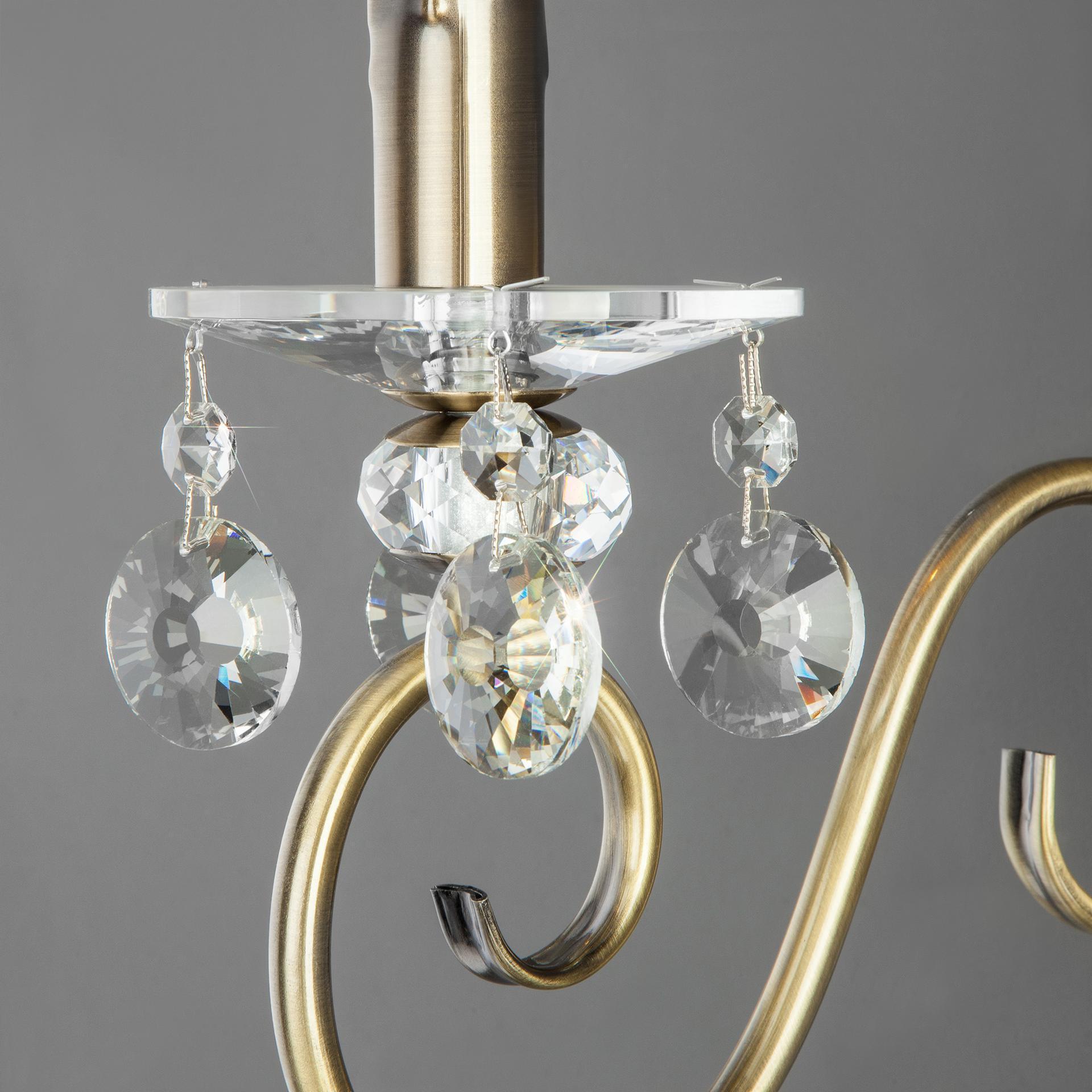 Бра с хрустальным декором 10104/1 античная бронза/прозрачный хрусталь Strotskis из серии Ravenna станет ярким световым акцентом в классических интерьерах и создаст качественное освещение на площади 4 м². Изящные чаши подсвечников украшены хрустальными подвесками, которые искрятся в лучах света, наполняя помещение выразительным блеском. В качестве источника света используются сменные лампы типа "Свеча на ветру" с цоколем E14. Патрон рассчитан на максимальную мощность ламп накаливания 60 Вт. Корпус светильника выполнен из высококачественного и прочного металла с надежным покрытием. Бра легко устанавливается при помощи крепежной планки, которая обеспечивает надежную фиксацию светильника на стене. Классическое бра с изящными формами гармонично сочетается с хрустальными люстрами и станет отличным завершением композиции вашей гостиной или спальни.