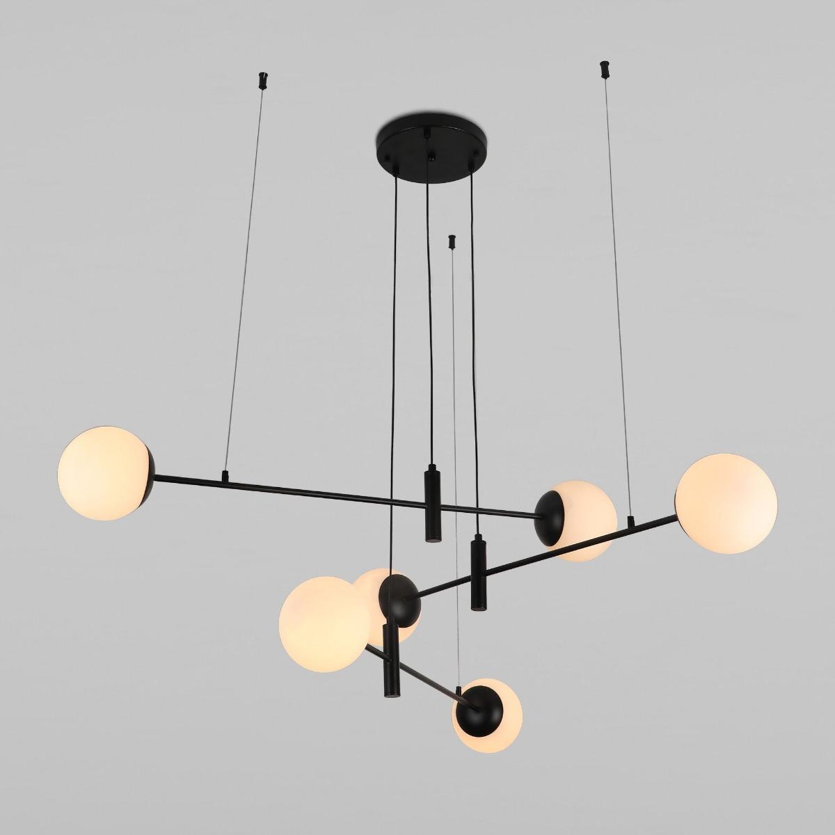 Восхитительная модель 70146/6 черный от российской компании Eurosvet относится к коллекции Planet и отлично подойдет для установки на потолок в гостиной, оформленной в стиле лофт. Подвесная люстра Eurosvet 70146/6 черный с плафонами в виде шаров осветит помещение площадью 12 кв. м. Производитель Eurosvet рекомендует использовать для устройства лампы накаливания с цоколем E27 и мощностью 60 W. Прибор произведен с использованием материалов: металл и стекло. Основным цветом товара является черный и матовый белый. Подвесная люстра 70146/6 черный продается по цене 22900 руб. Торопитесь сделать заказ в интернет-магазине SvetONe.