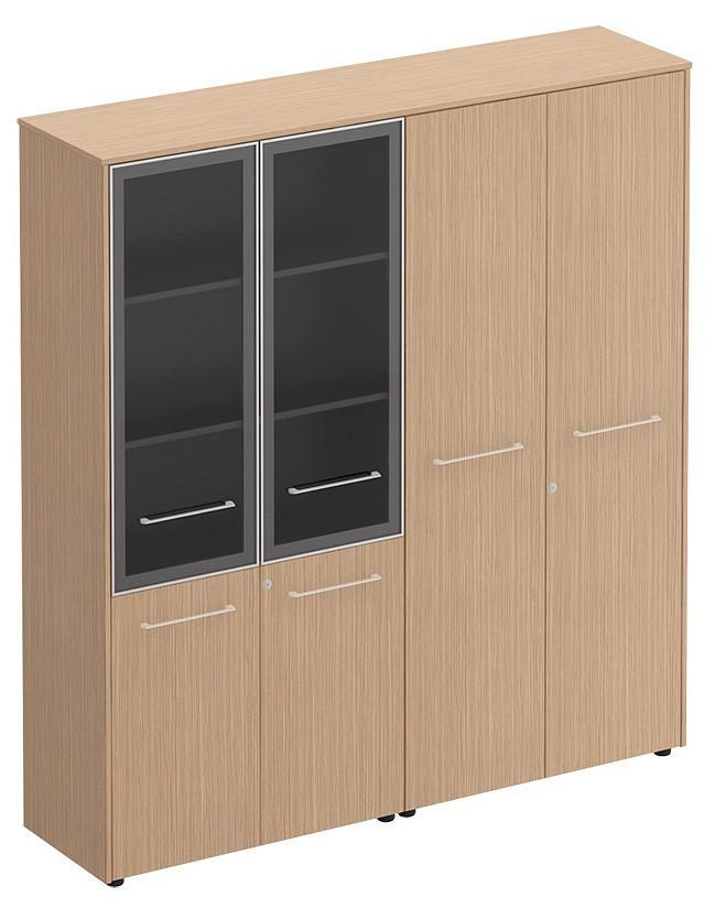Шкаф комбинированный является стенкой, состоящей из шкафа со стеклом для документов и шкафом для одежды под общим топом.