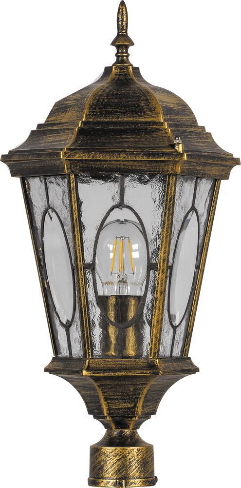 Светильник садово-парковый, серии «Рим» (НТУ) FERON PL162 1*60W, E27, 230V, IP44, цвет черное золото, 6-и гранник, на столб, 205*175*440мм
