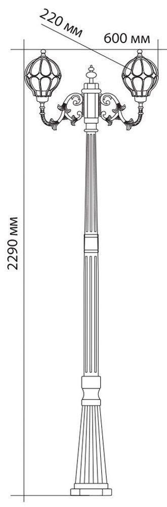 Светильник садово-парковый, серии «Версаль» (НТУ) FERON PL3808 2*60W, E27, 230V, IP44, цвет черное золото, шар, столб большой, 600*220*2310мм