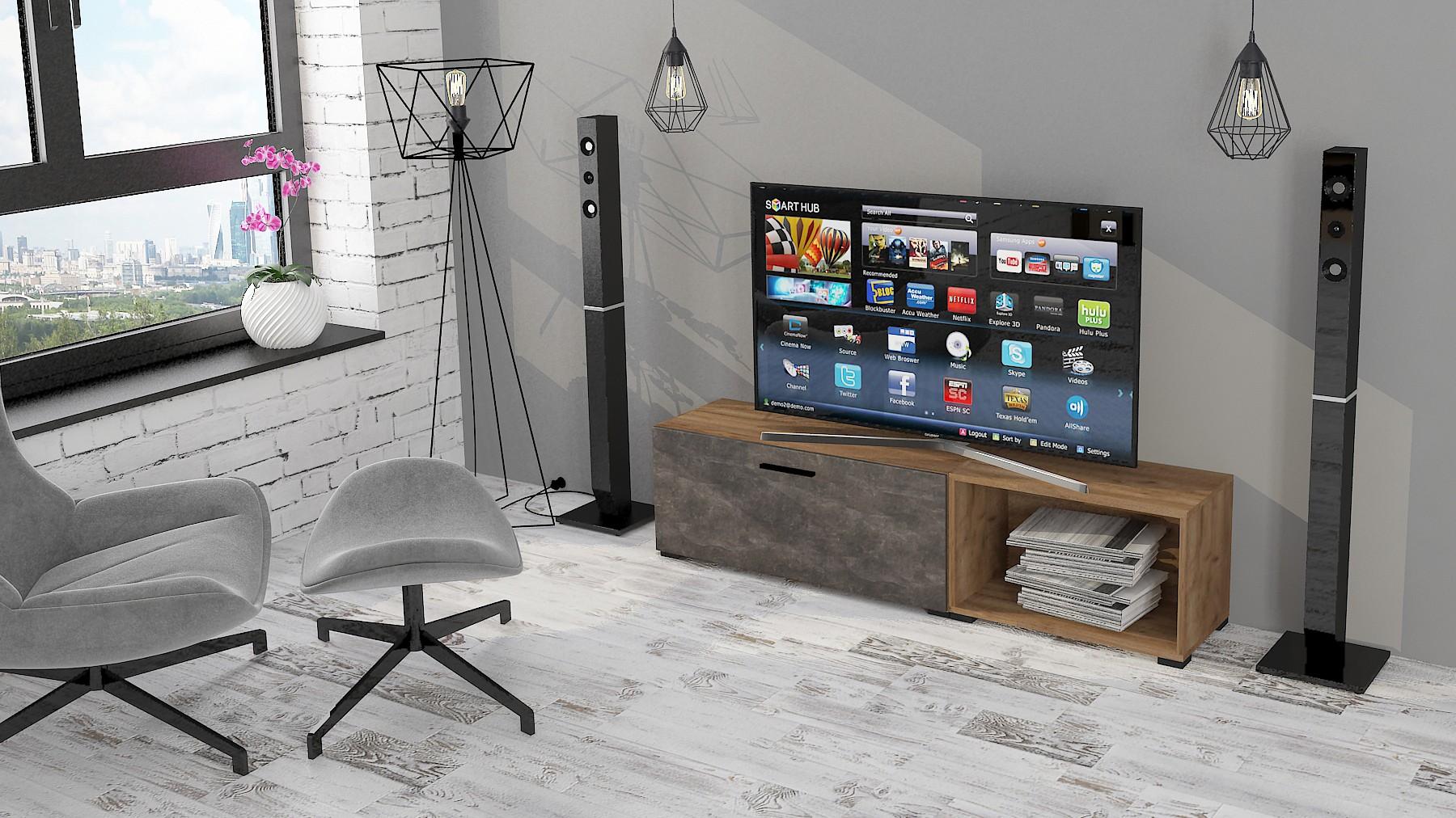 ТВ-тумба сделана из ЛДСП класса Е1 ведущего европейского производителя.