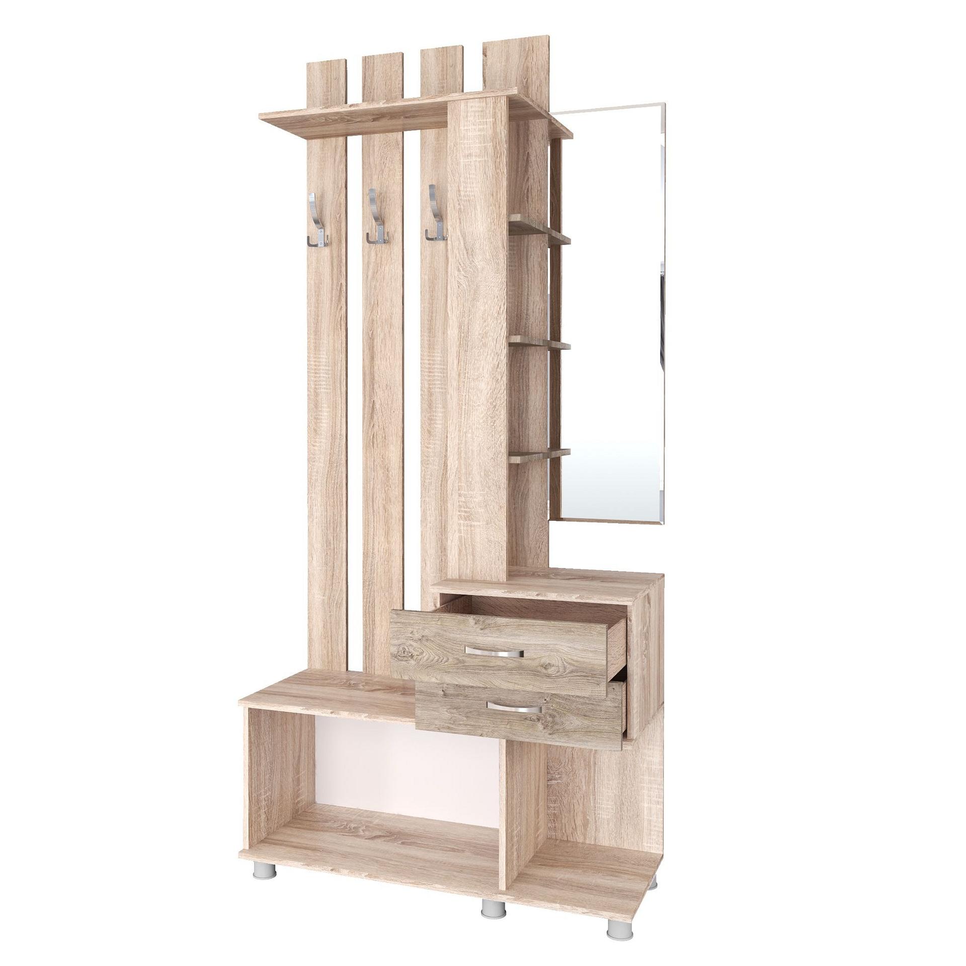Когда все вещи находятся на своих местах – это залог красивого и аккуратного интерьера. Тем приятнее, когда зоной для хранения становится вместительная и надежная вешалка с тумбой Микс Арт TKS_00-00014723. Эта модель изготовлена брендом Тэкс и входит в серию «Микс Арт». Матовый корпус вешалки сделан из популярного материала (ЛДСП Е1) и окрашен в благородный оттенок «дуб сонома». Производитель предлагает комплектацию, в которую входит: 1 откидная дверца,, 2 ящика,, 3 крючка,, 7 полок. Вешалка с тумбой Микс Арт стоит 9174 руб.